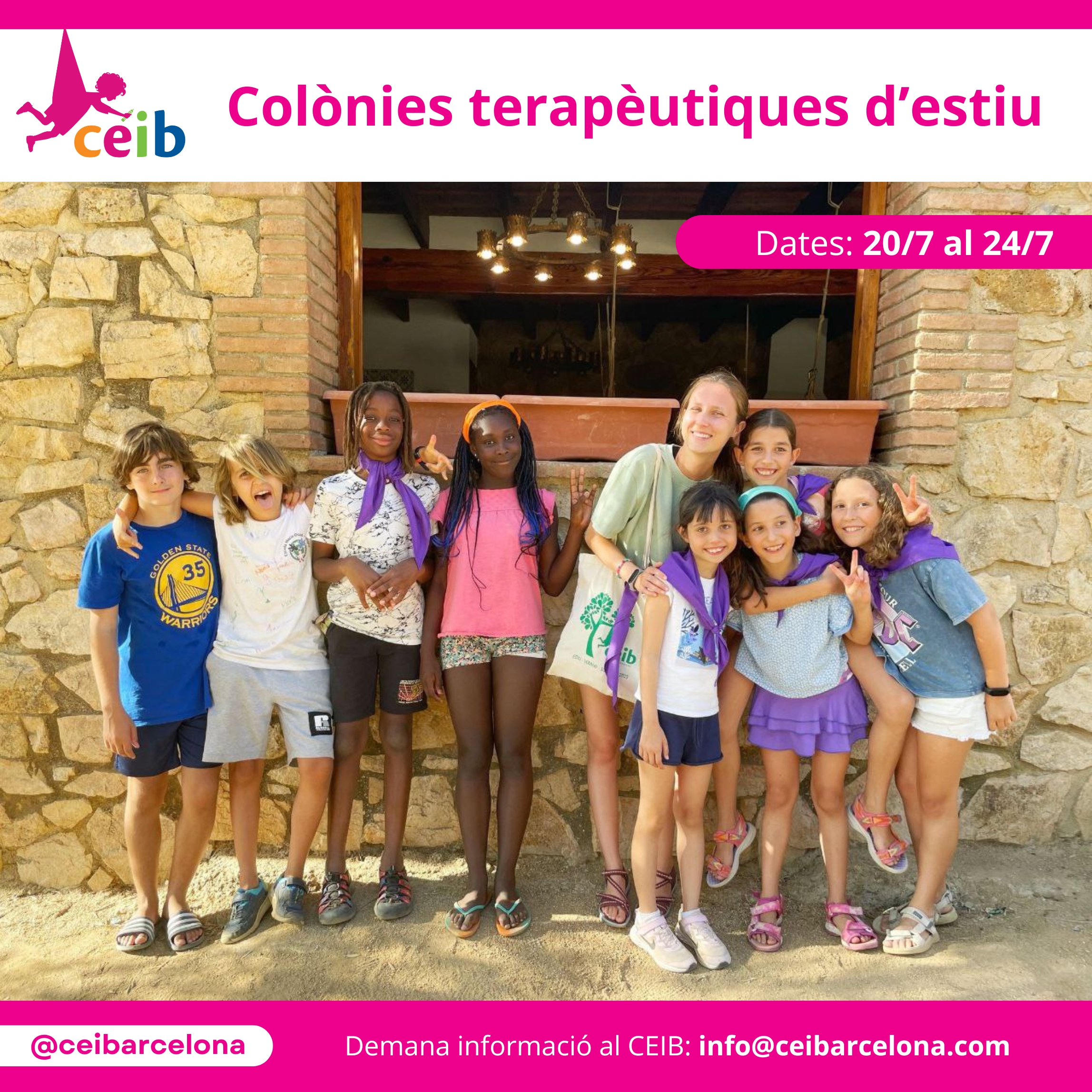 Aquest any celebrem la 20a edició de les nostres colònies terapèutiques, la setmana del 20 de juliol 2026. Un total de 50 infants i 25 terapeutes/monitors, marxem durant 5 dies i 4 nits, per realitzar l’activitat terapèutica més apassionant que coneixem!